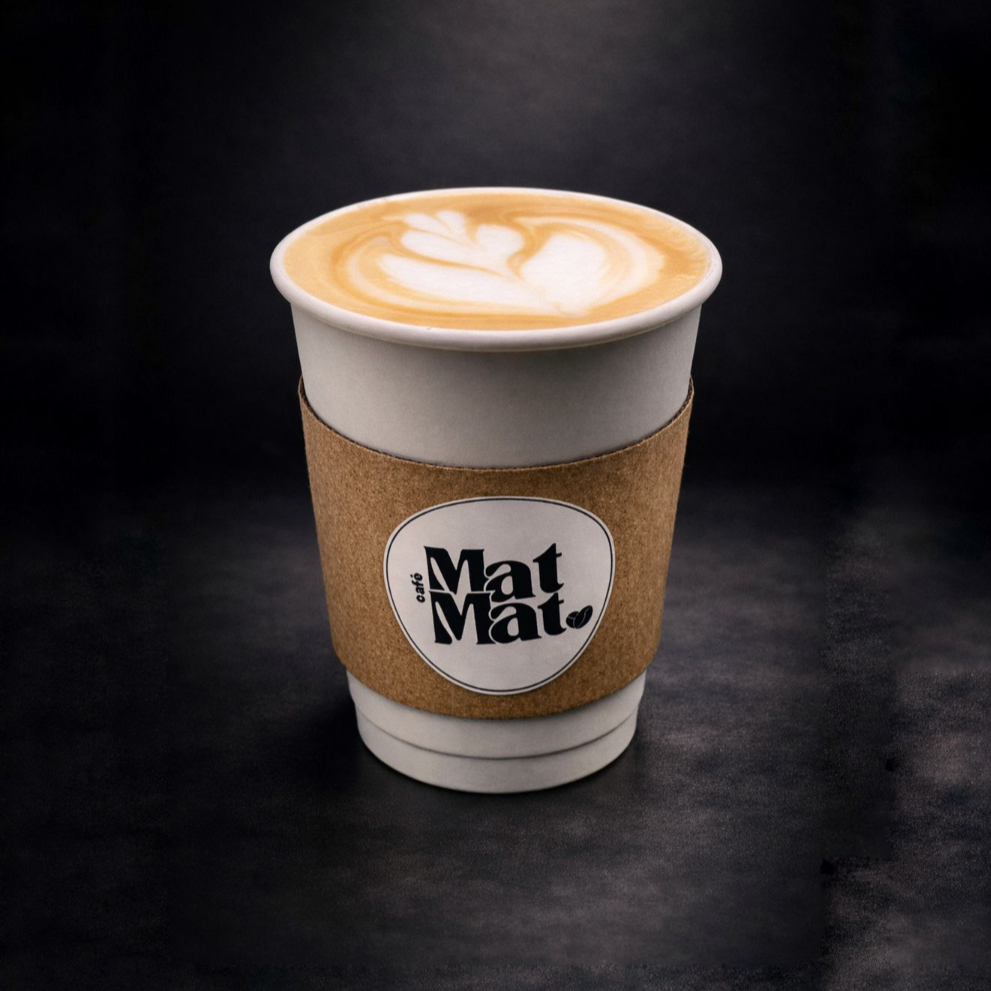 Café espresso con leche vaporizada, sabor suave y cremoso.