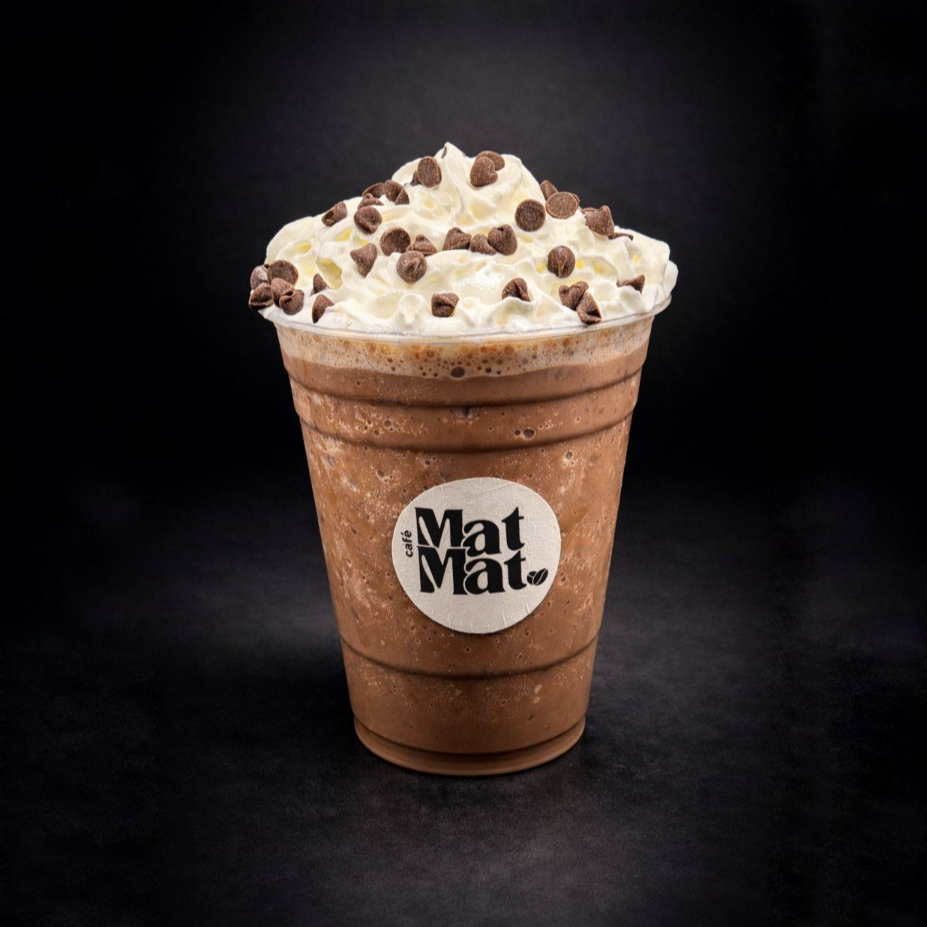 Frappe de chocolate oscuro, ¡Mezclado con trozos crujientes de más chocolate!