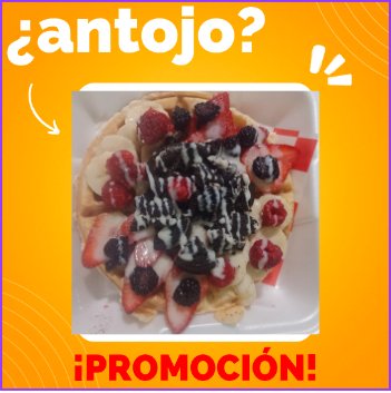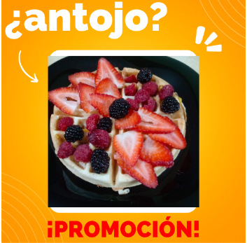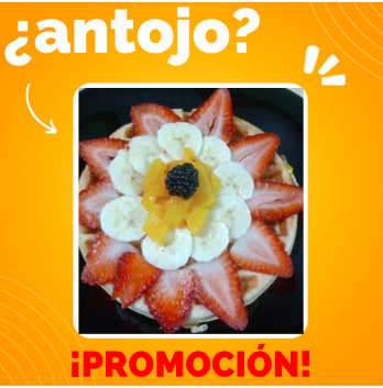 Delicioso Waffle con Fresas, Plátano, Durazno en Almíbar, un toque de Zarzamoras bañada con la base de tu preferencia. Puedes elegir tu pan Imperial con nuez chispas de chocolate pasas o arandanos.