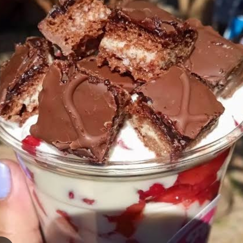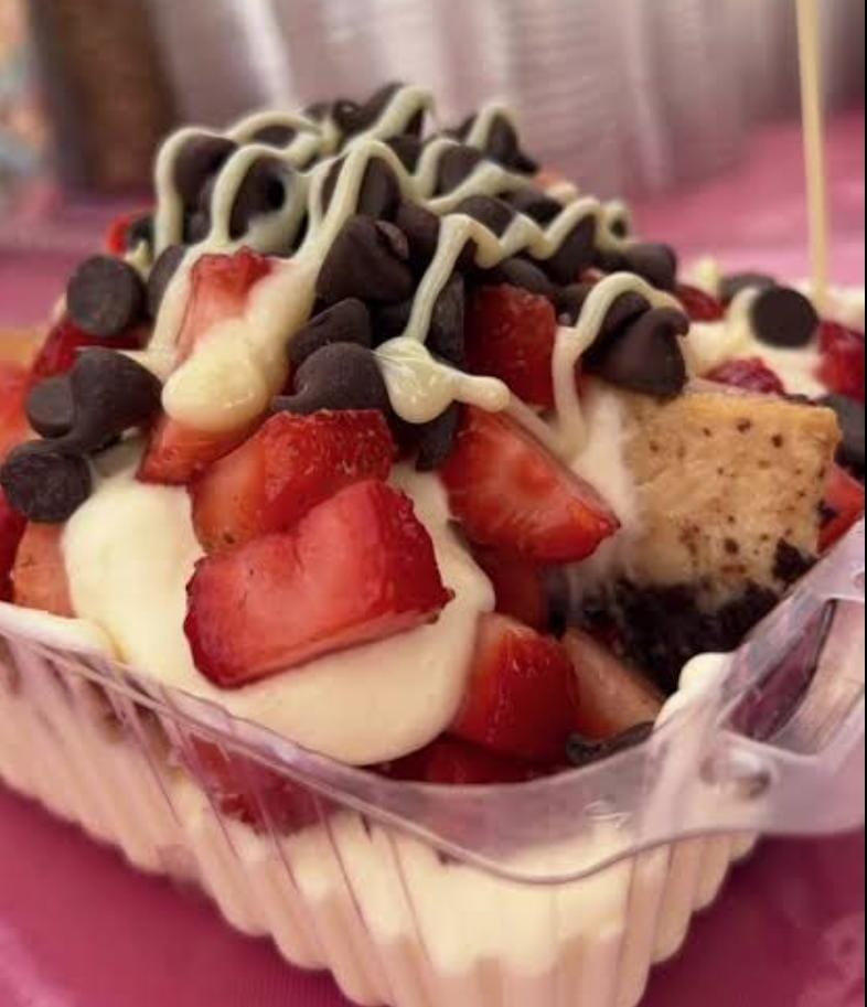 Vaso 10 oz Fresa, crema ,pastelito a elegir , y 2 toppings