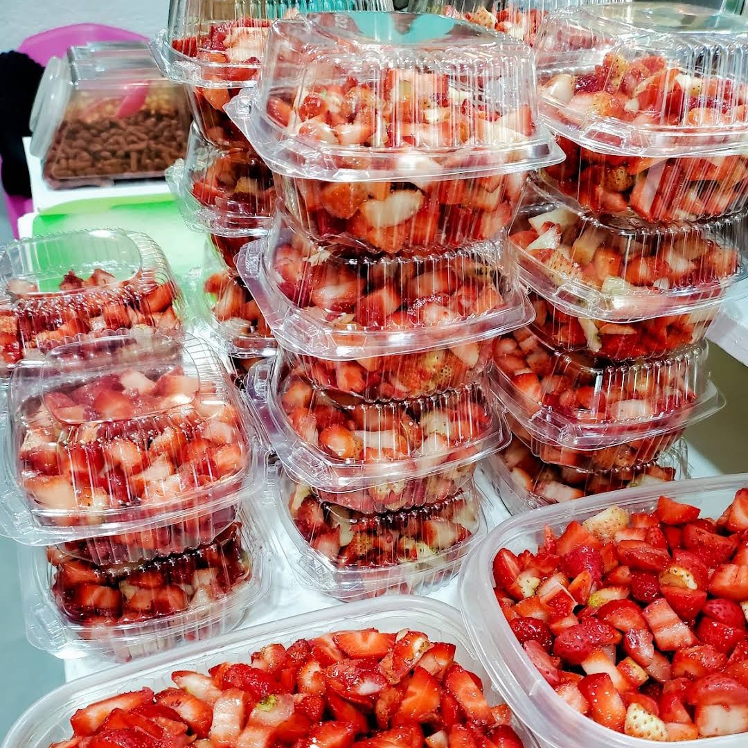 Vaso 10 oz de fresas con crema , fruta a elegir y 2 toppings