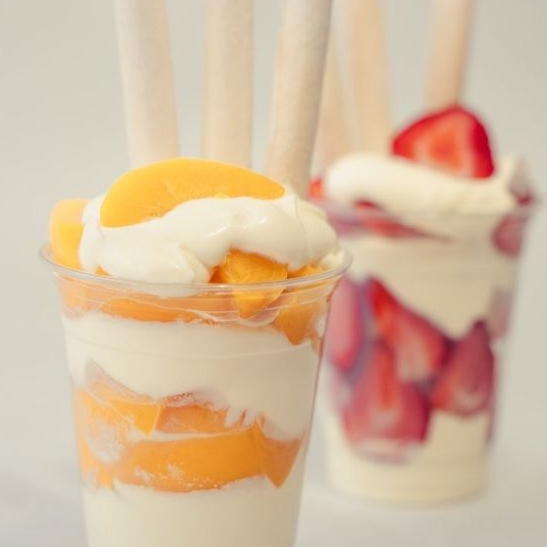 1 Vaso de 10 oz con CREMA DULCE Y DURAZNO EN ALMIBAR
