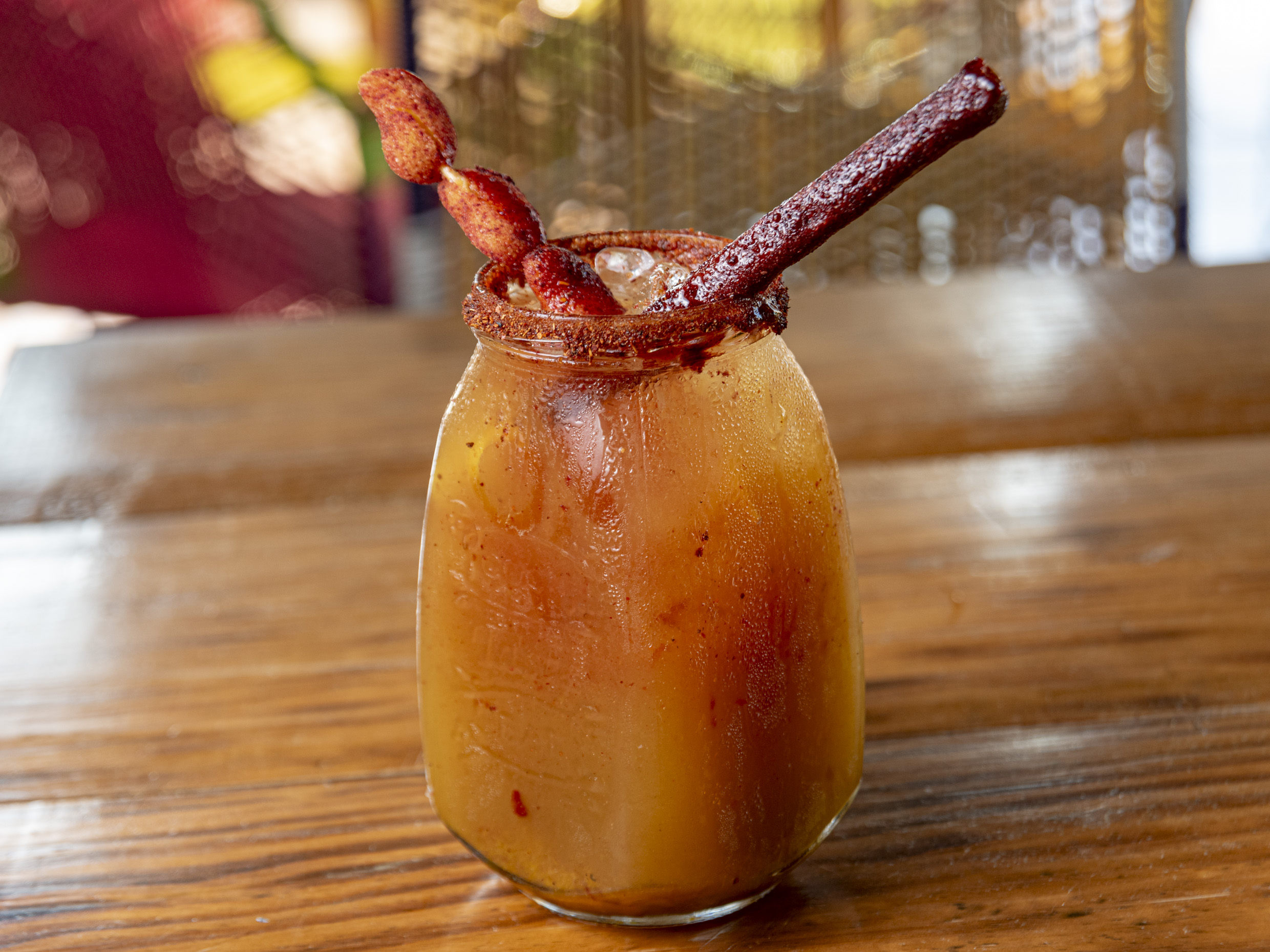 Michelada con Camarón Cocido más 2 Botanas Copiar