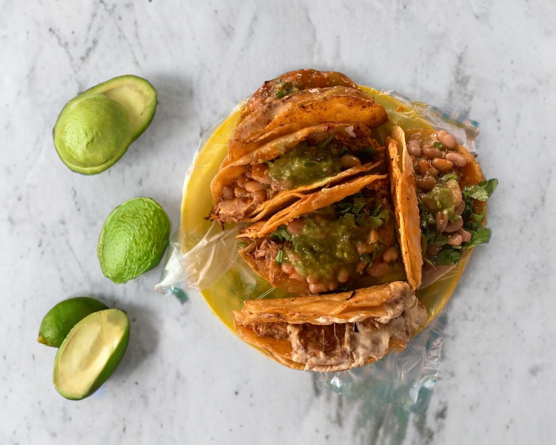 aco relleno de birria de res jugosa y bien sazonada, servido en tortilla calientita y acompañado de cebolla picada, cilantro fresco, salsa picante y limón