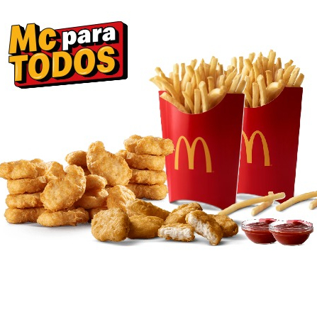 2 McPollos, 2 Hamburguesas con queso, 1 nuggets de 6 piezas y 2 Papas Grandes