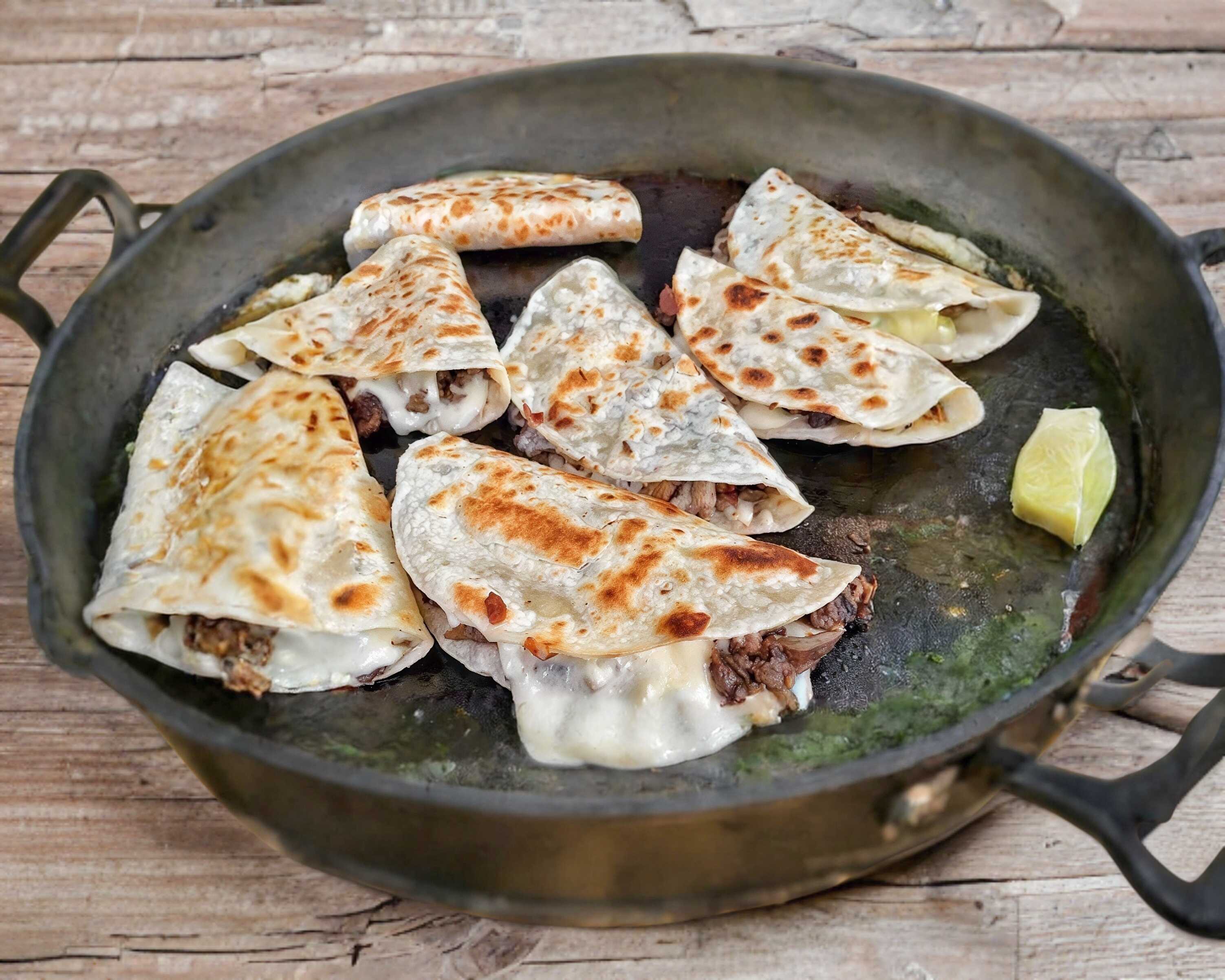 Tortilla de Ariana 30 cm con arrachera.... cilantro cebolla y guacamole aparte