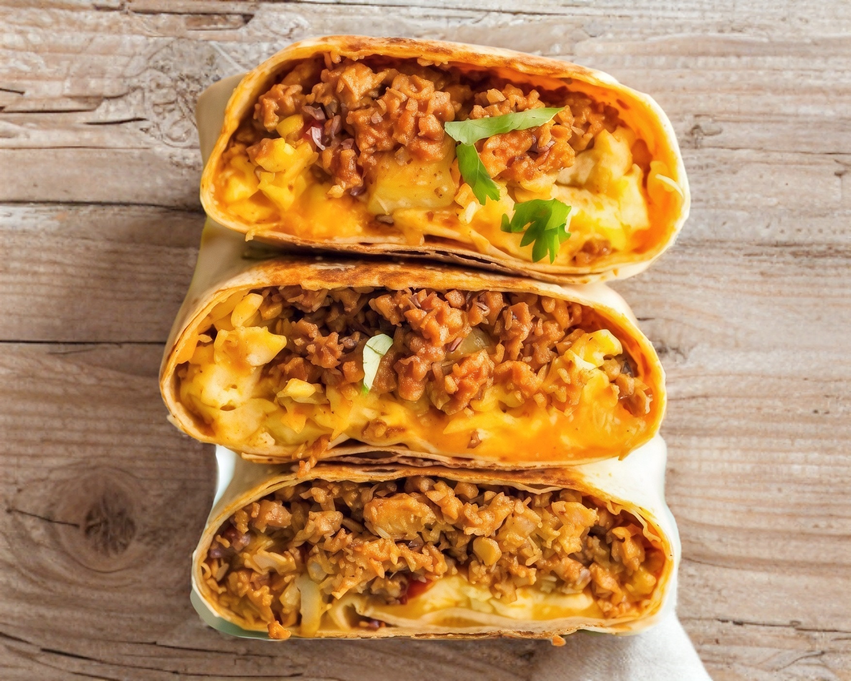 Gran tortilla de harina con huevos y chorizo, salsa picante aparte peso aproximado de 450 g.