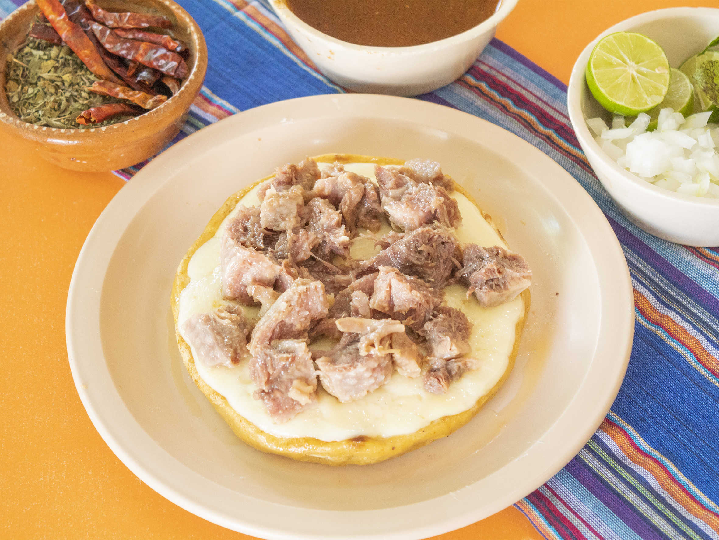 Cebolla, limón, chile, salsa mejorana.