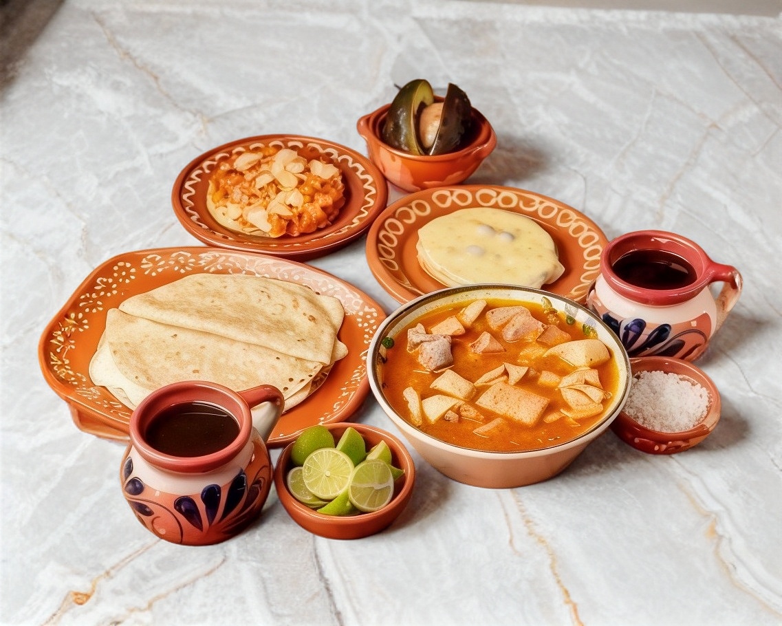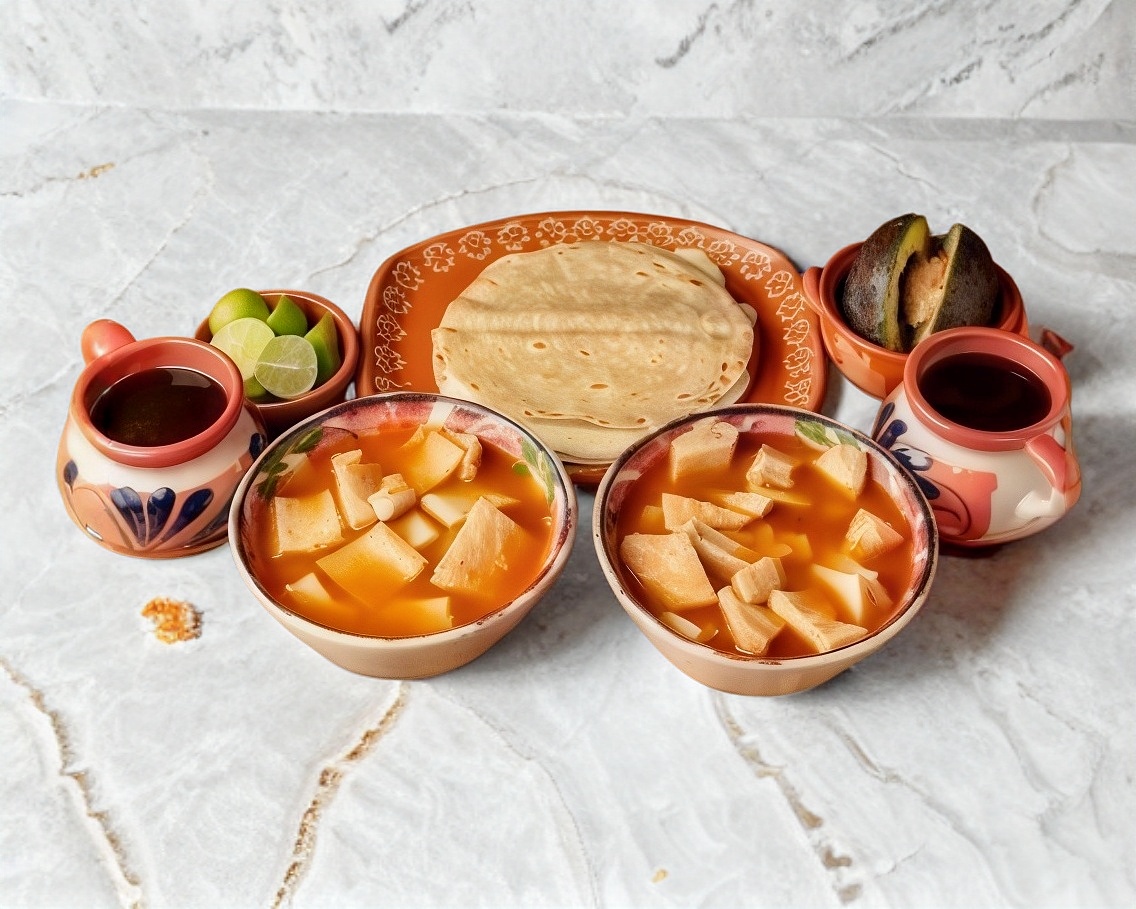1 Delicioso menudo grande de callo y pedacitos, 2 pellizcadas 1 de queso y mantequilla, 1 chicharrón, 1 L de café de olla, 2 quesadillas sencillas, incluye cebolla, limones, mejorana, salsa de la casa y tortillas.