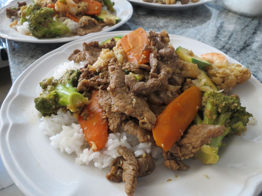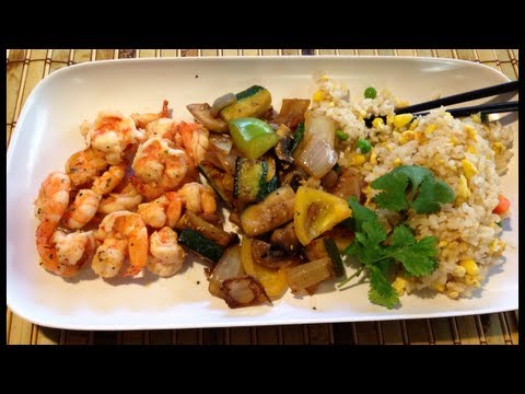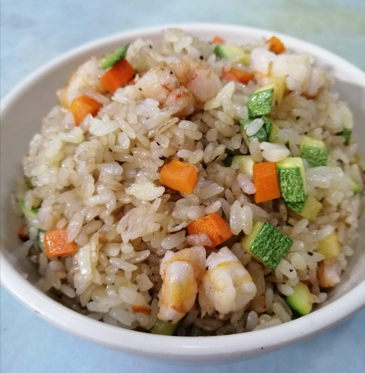 130 gramos de camarón a la plancha con verduras y porción de arroz