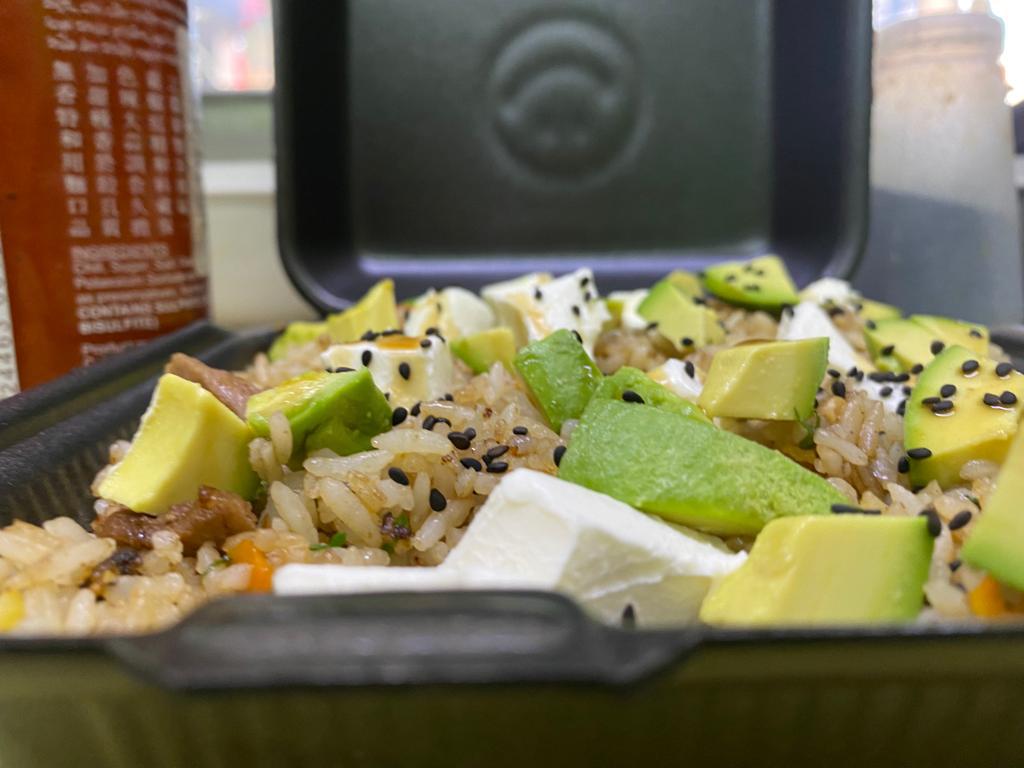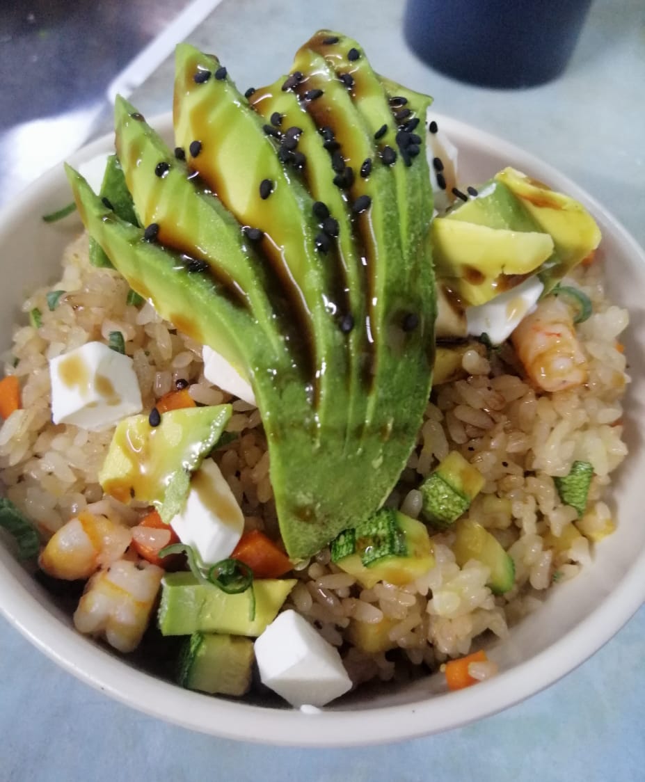 Arroz frito con aguacate, philadelphia, ajonjolí y proteína a elejir.