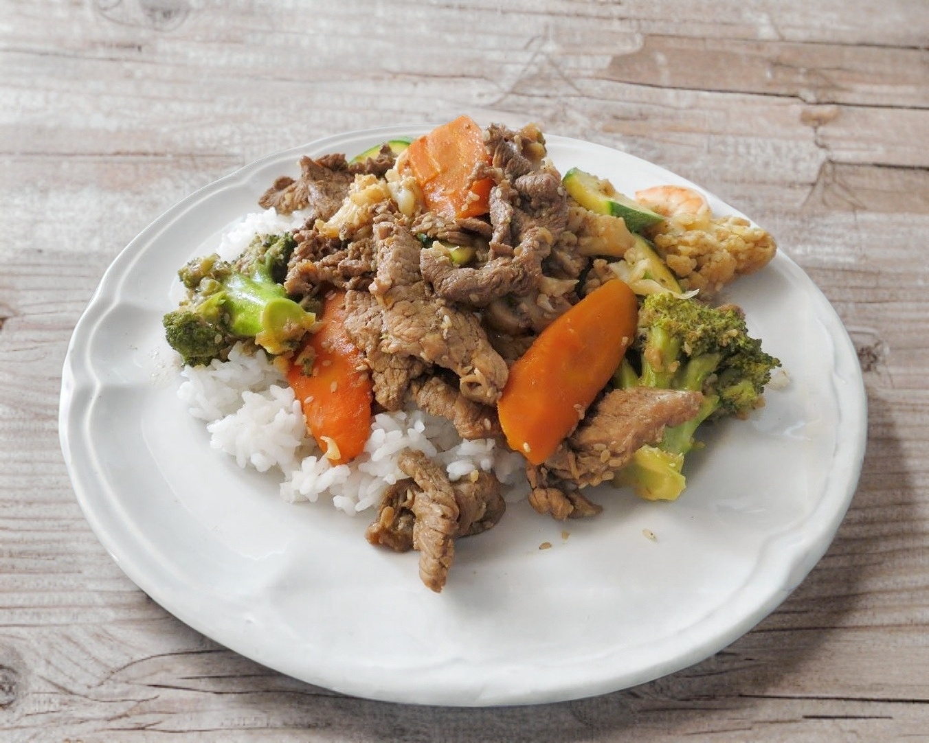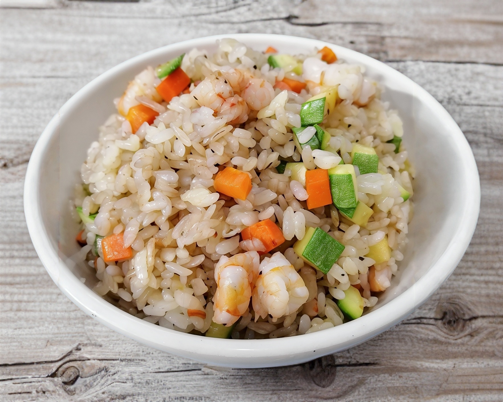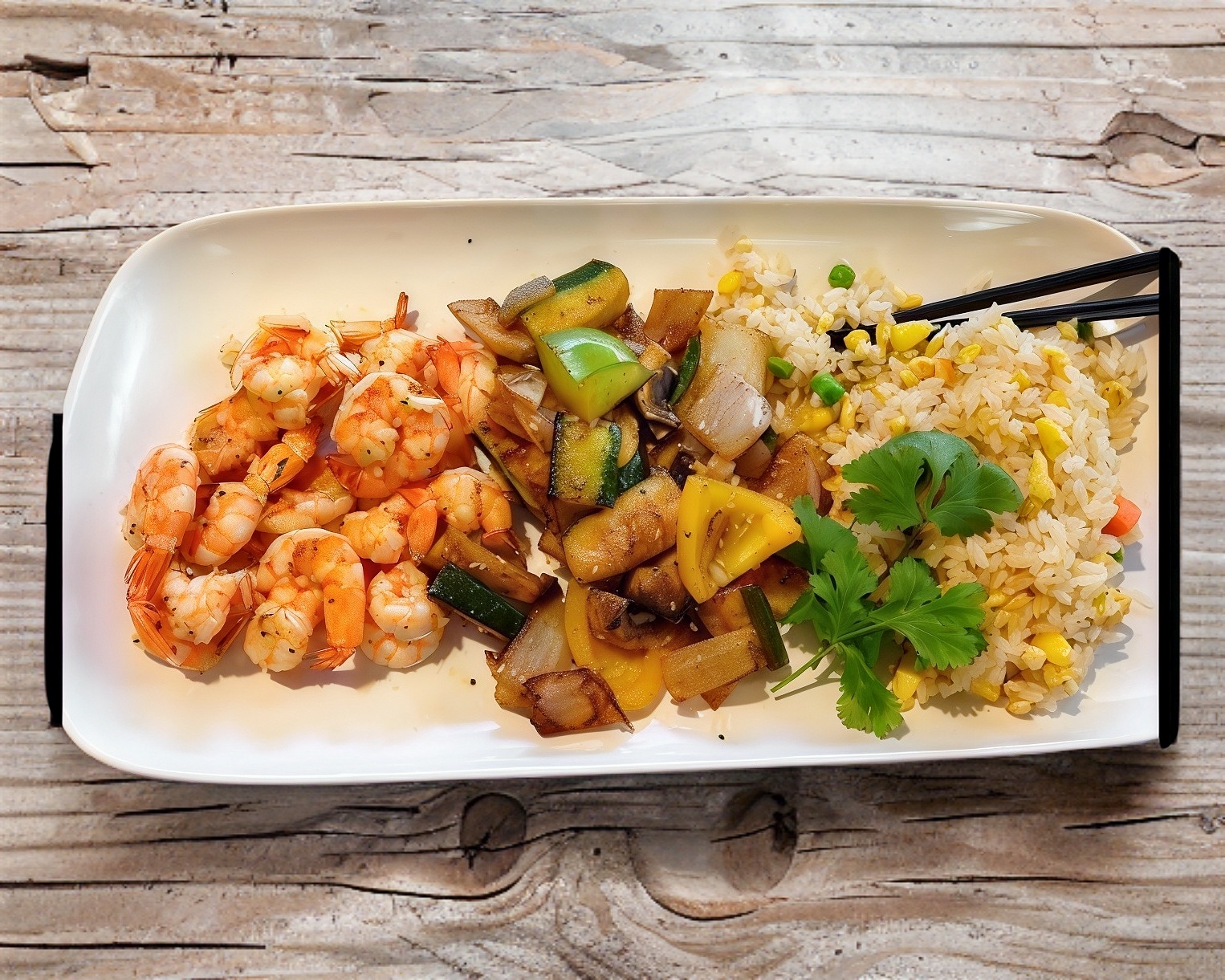 130 gramos de camarón a la plancha con verduras y porción de arroz