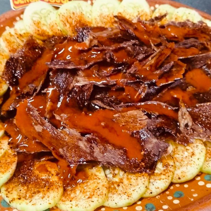 Incluye cecina, pepino, maggi, chile, chamoy, tajin, sal y limón, tiempo de preparaciòn 15 minutos