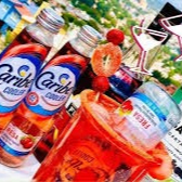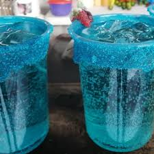Caribe Cooler, Sprite, Agua Mineral, Gomitas y Shot de Vodka Decorado con Pepino sal y limon