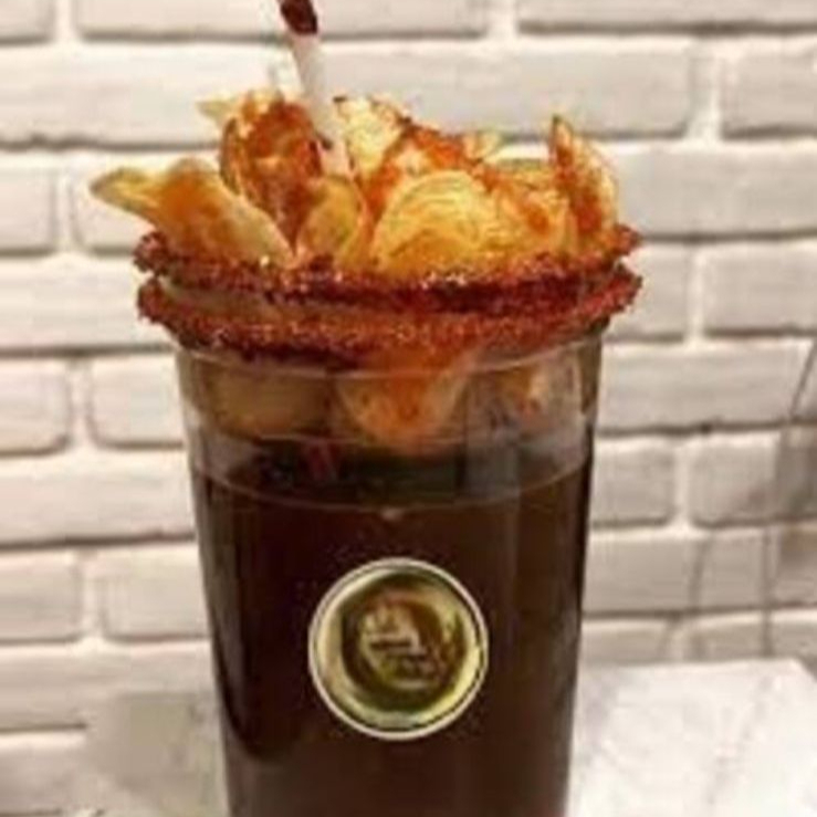 1 litro de deliciosa cubana o michelada va con cacahuate y papas fritas con chile y limon