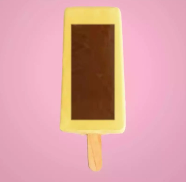Helado sabor vainilla en forma de sándwich con una galleta suave de chocolate.