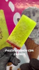 Nieve raspada de fruta 100% natural, acompañado de chamoy, chile tipo, tajín y banderilla de tamarindo.