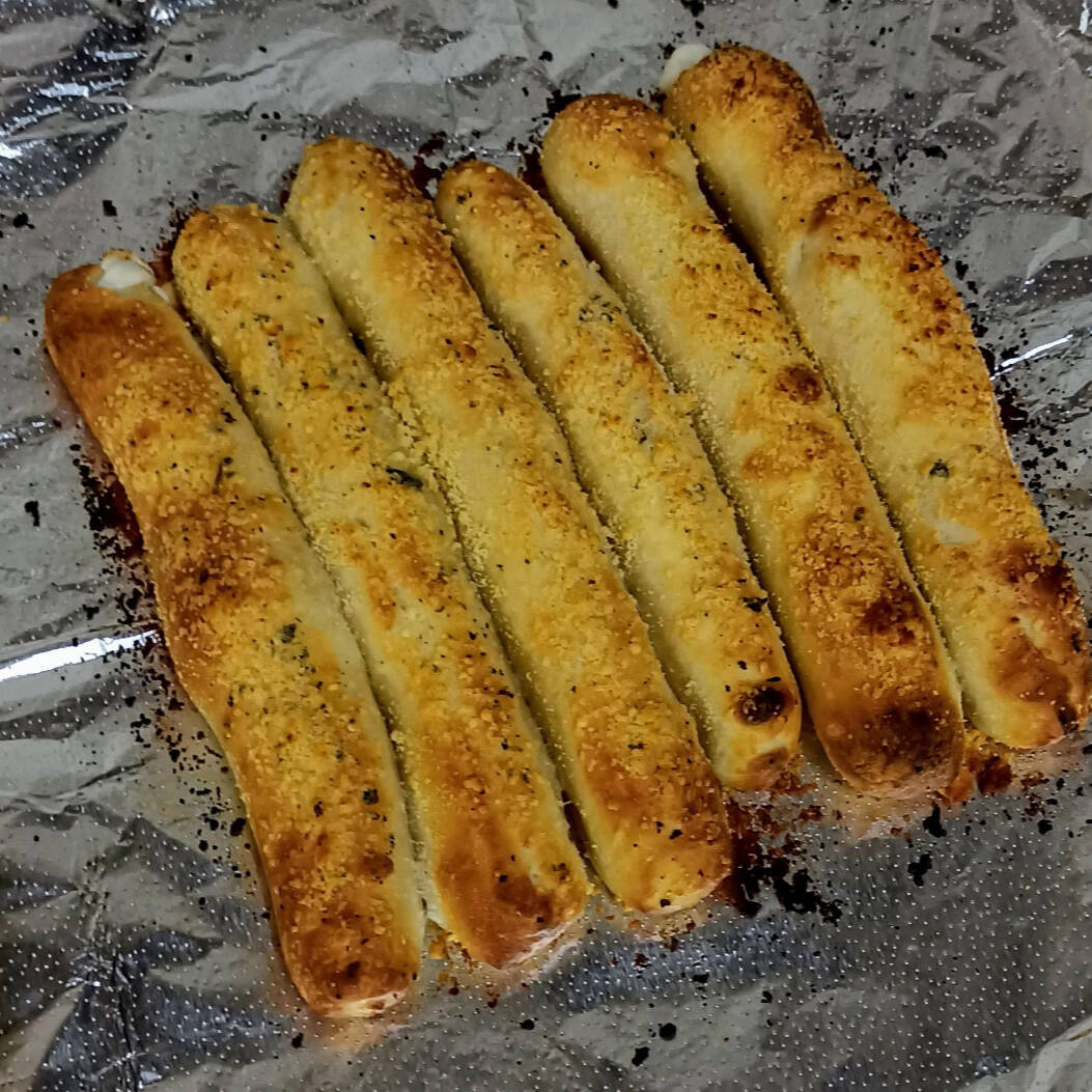 Cinco tiras de parmesano con un Dip de salsa de pizza