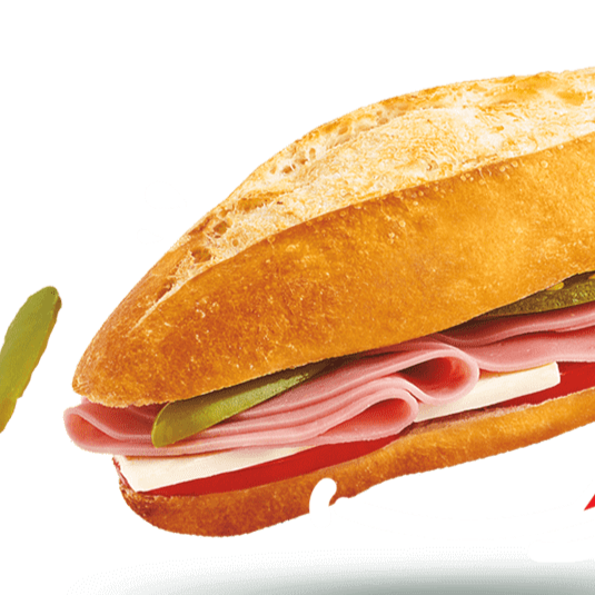 Bolillo, jamon, crema, jitomate, cebolla, aguacate y chile jalapeño.