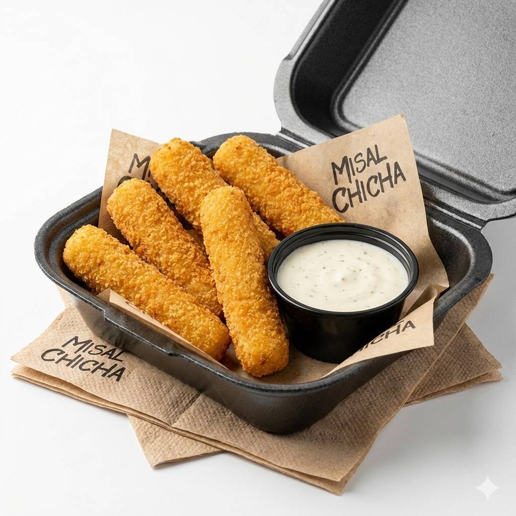 5 Dedos de queso mozarella empanizados. Incluye 1 Dip ranch
