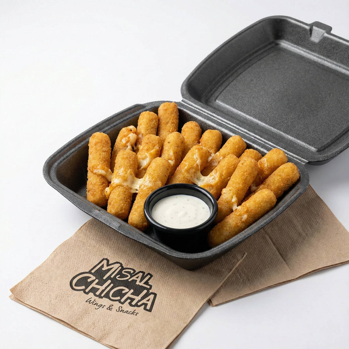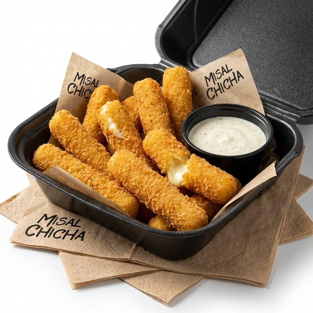 15 Dedos de queso mozarella empanizados. Incluye 2 dip de aderezo ranch