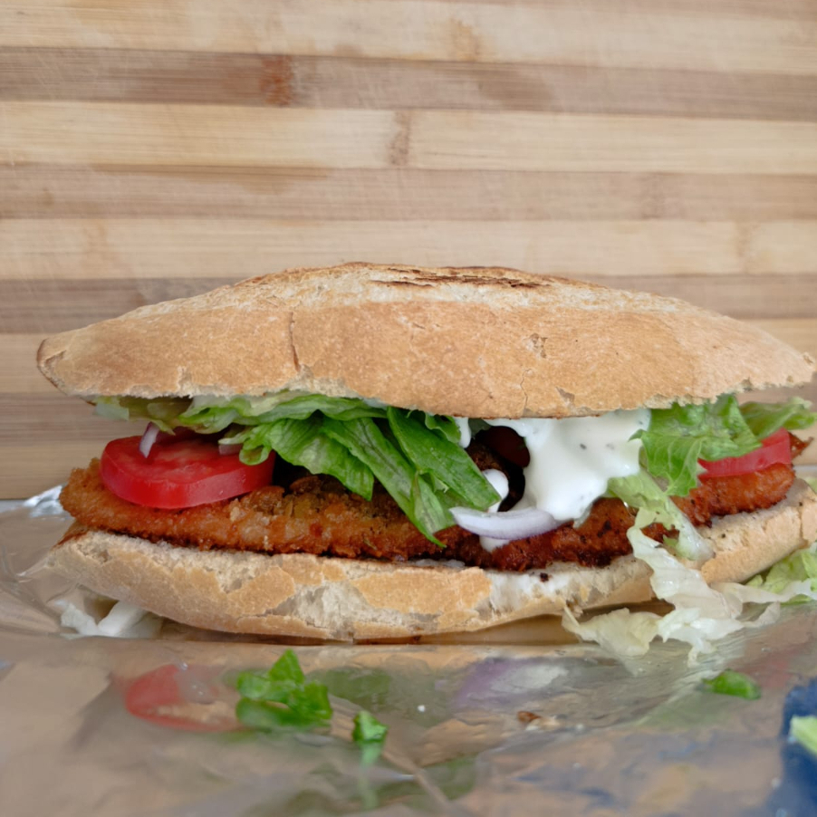 Pan empanizado y frito al sartén, puede ser relleno con salchicha, jamón, panela, salami, pollo empanizado, lechuga y un toque de aderezo. ¡Crujiente por fuera, brutal por dentro!