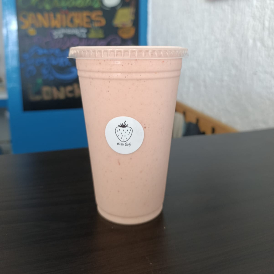 Licuado cremoso hecho con fresas frescas, leche y un toque de azúcar. Refrescante, dulce y natural. Leche entera Puede llevar azúcar o miel