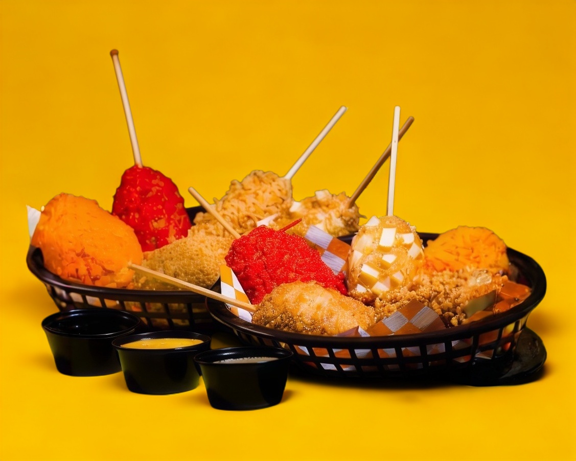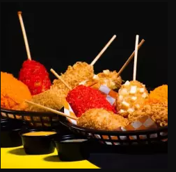 Para chuparse los dedos. Banderilla de Queso Mozarella Capeada con nuestra masa coreana y cobertura de papa natural con un toque de Lemon Peper!