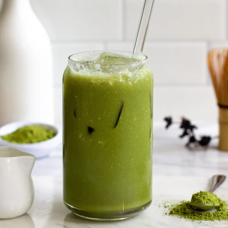 1 Cup de proteína, agua o leche, hielo, crema de cacahuate más canela.