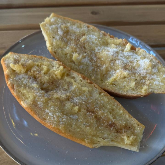 Pan doradito con mantequilla, servido con tu elección de azúcar, Nutella, leche condensada o cajeta.