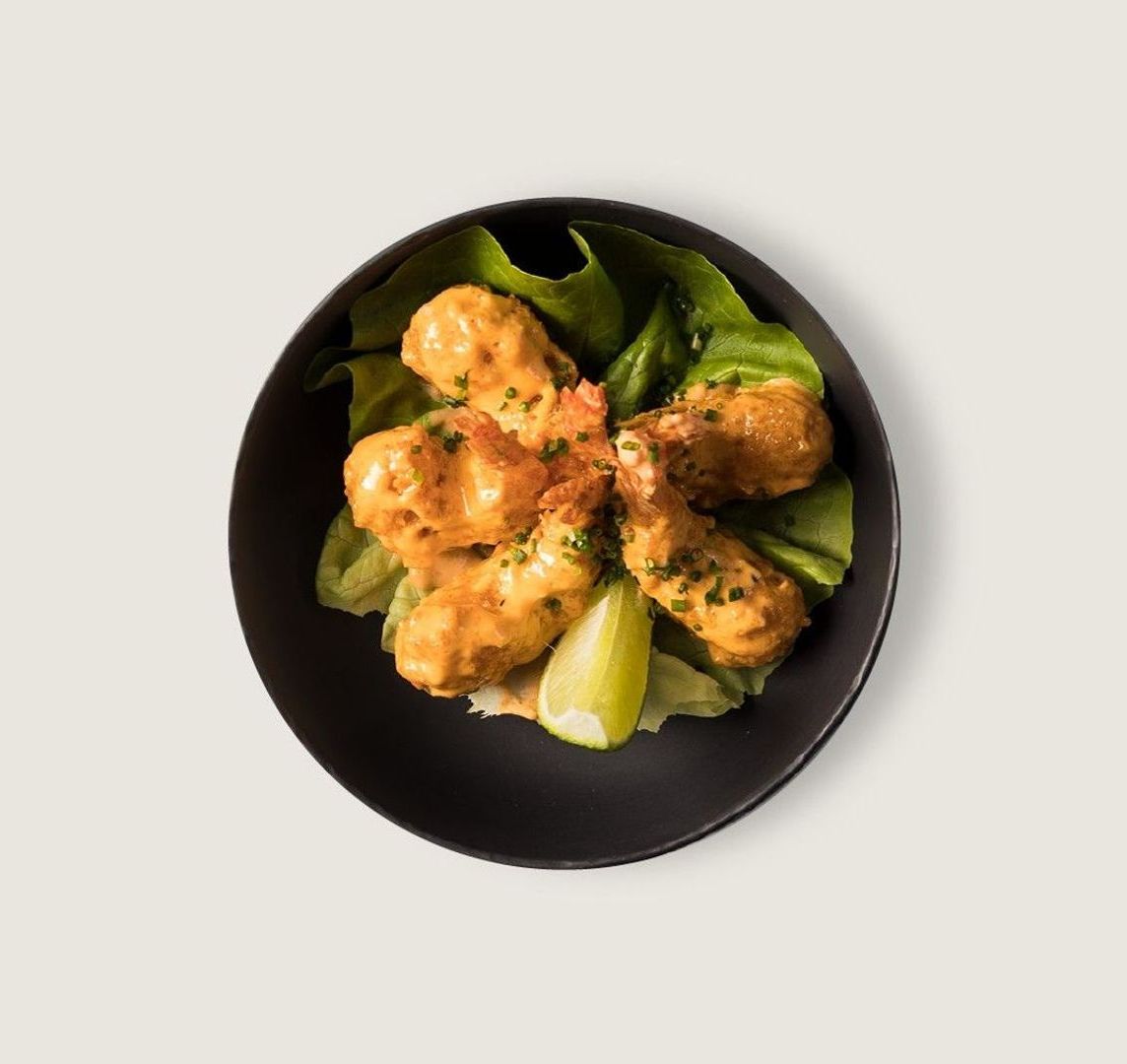 Camarones crujientes (100g) con aderezo rocca a base de sriracha