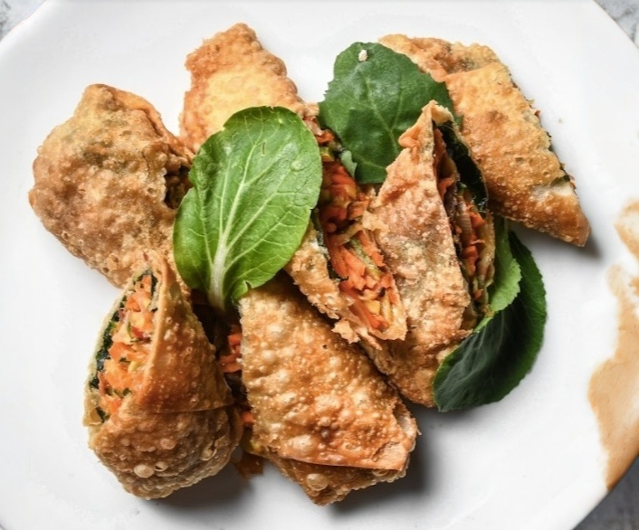 Rollitos envueltos en hoja de wonton, rellenos de verduras con sirloin, acompañados de una salsa dulce. (3 piezas)