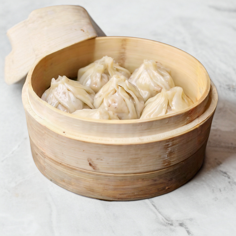 Dumplings al vapor preparados estilo chino, rellenosde vegetales y cerdo. (6 pzs)