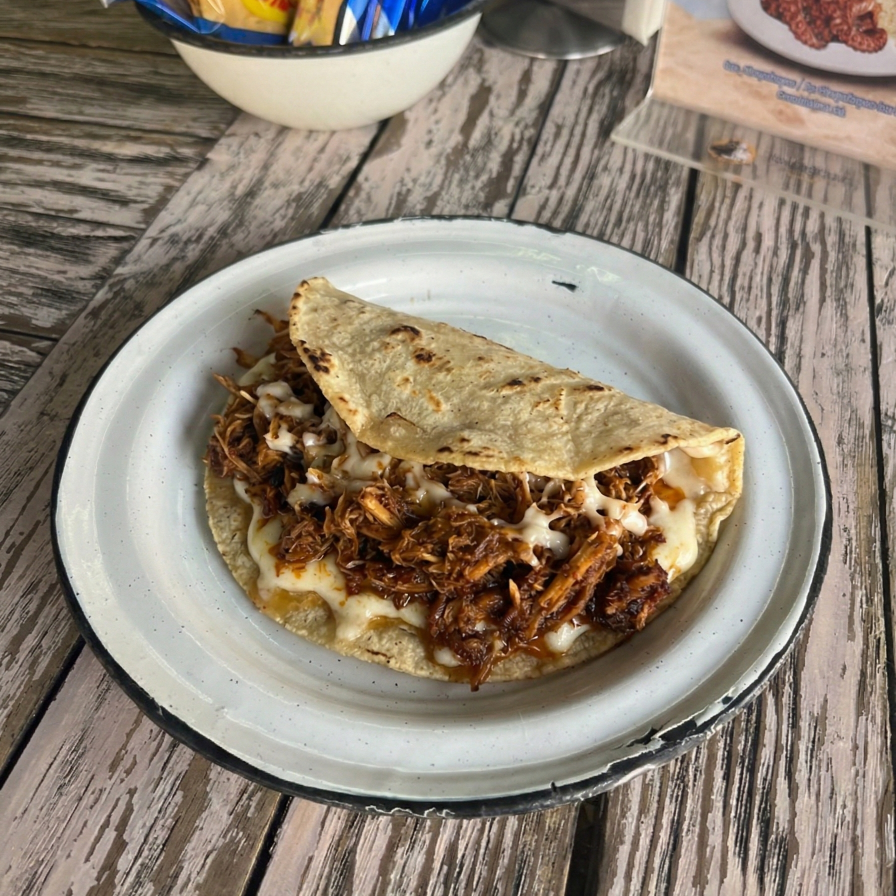 Machaca de marlín con queso en tortilla de maíz, 1 pza.