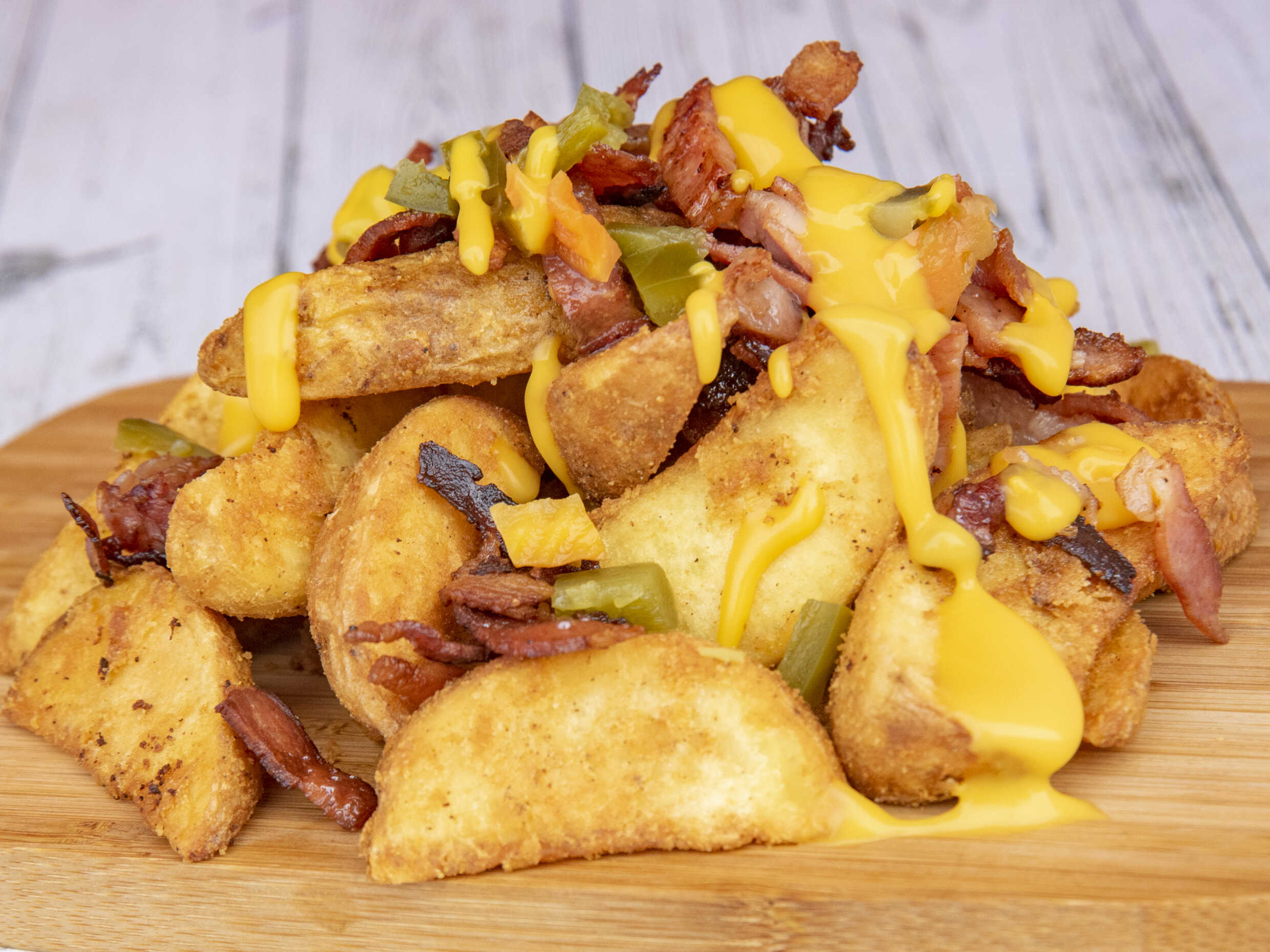Papa gajo, tocino, jalapeño y queso amarillo.