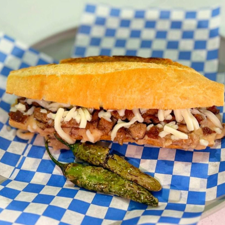 Lonche de pierna bañado en salsa con chipotle LA SALSA ESPECIAL DE LA CASA