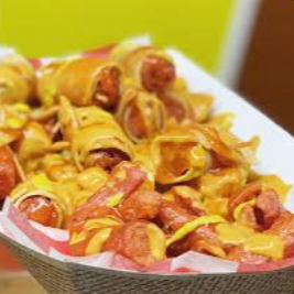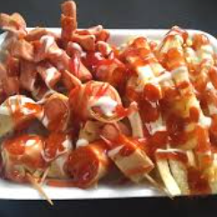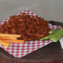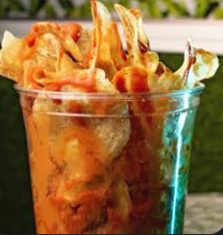 Orden mediana papa a la francesa bañada en tu salsa de alitas con queso de nachos.