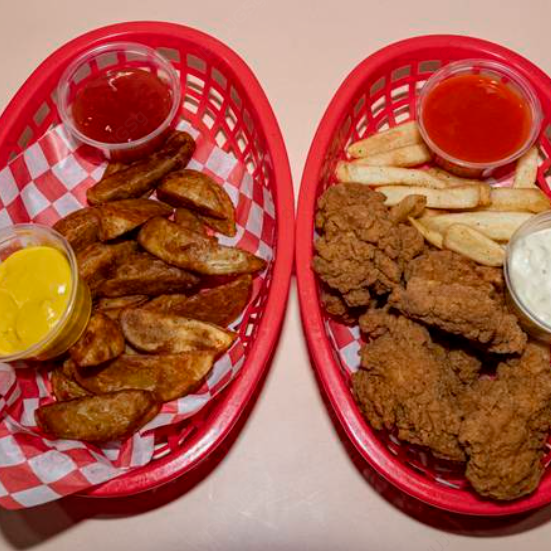 Boneless pa compartir (1/2 kg), orden papas gajo, 1/2 ord dedos queso.