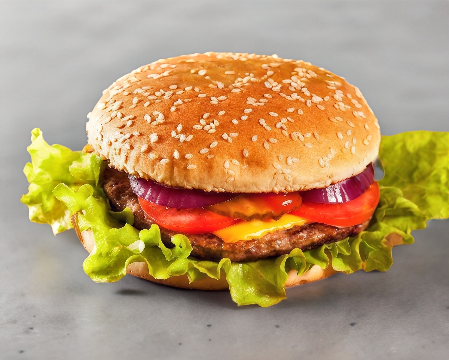 150g. Hamburguesa 100% res, queso amarillo, verdura, salsa de tomate, mostaza y crema.