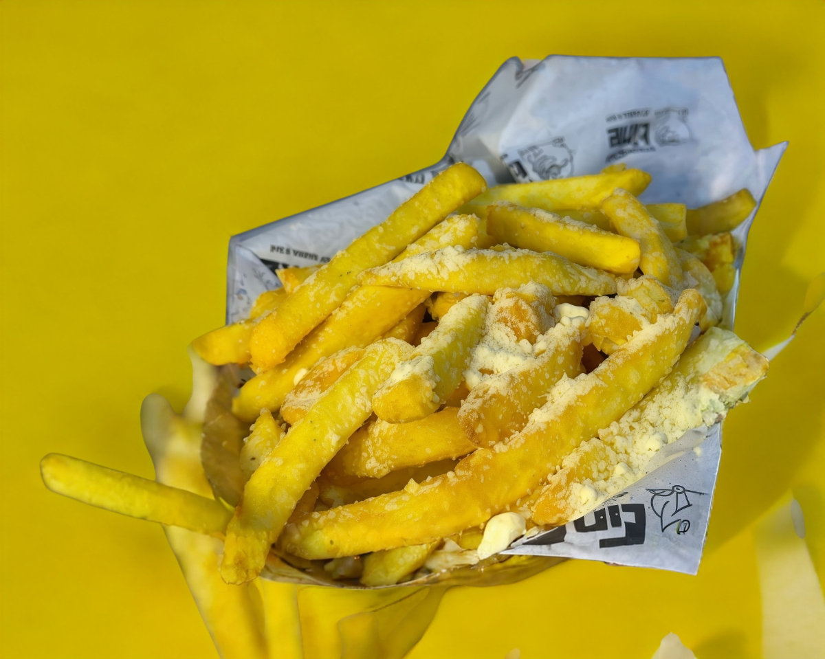 300gr de papas francesa sazonadas con un toque de mantequilla y ajo coronadas con queso parmesano y acomapañadas de aderezo ranch