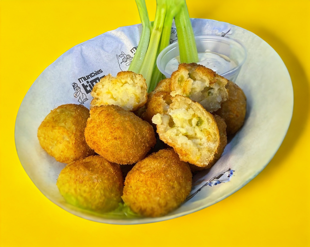 bolitas de papa rellenas de queso cheddar y jalapeño 12 piezas