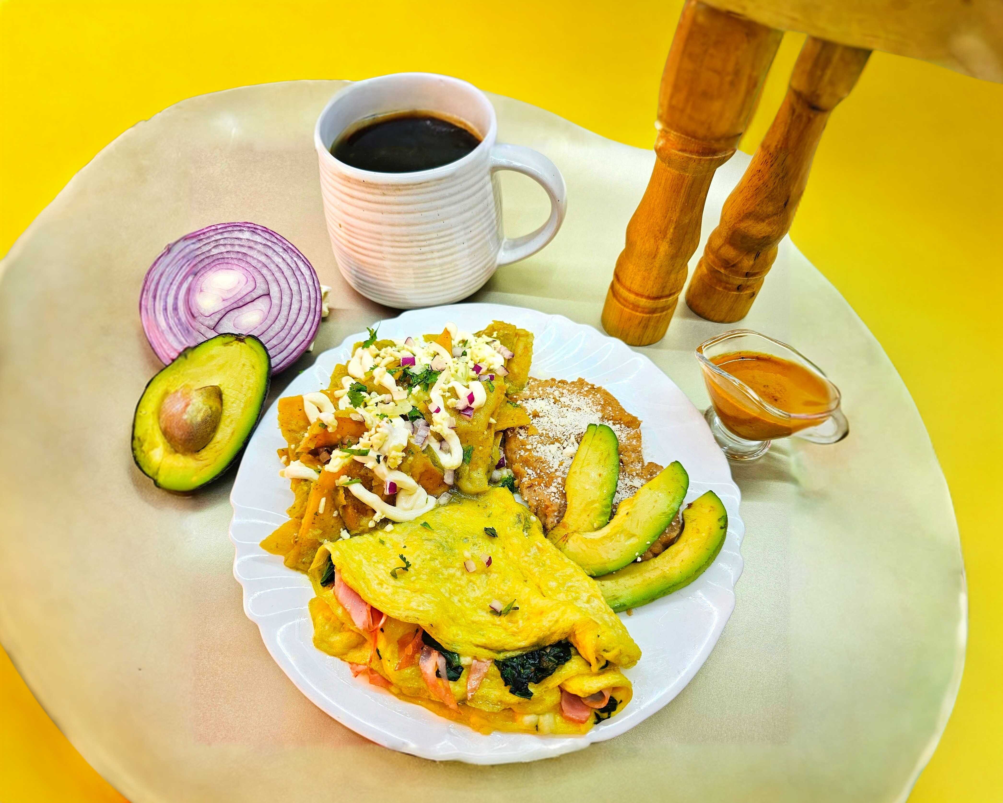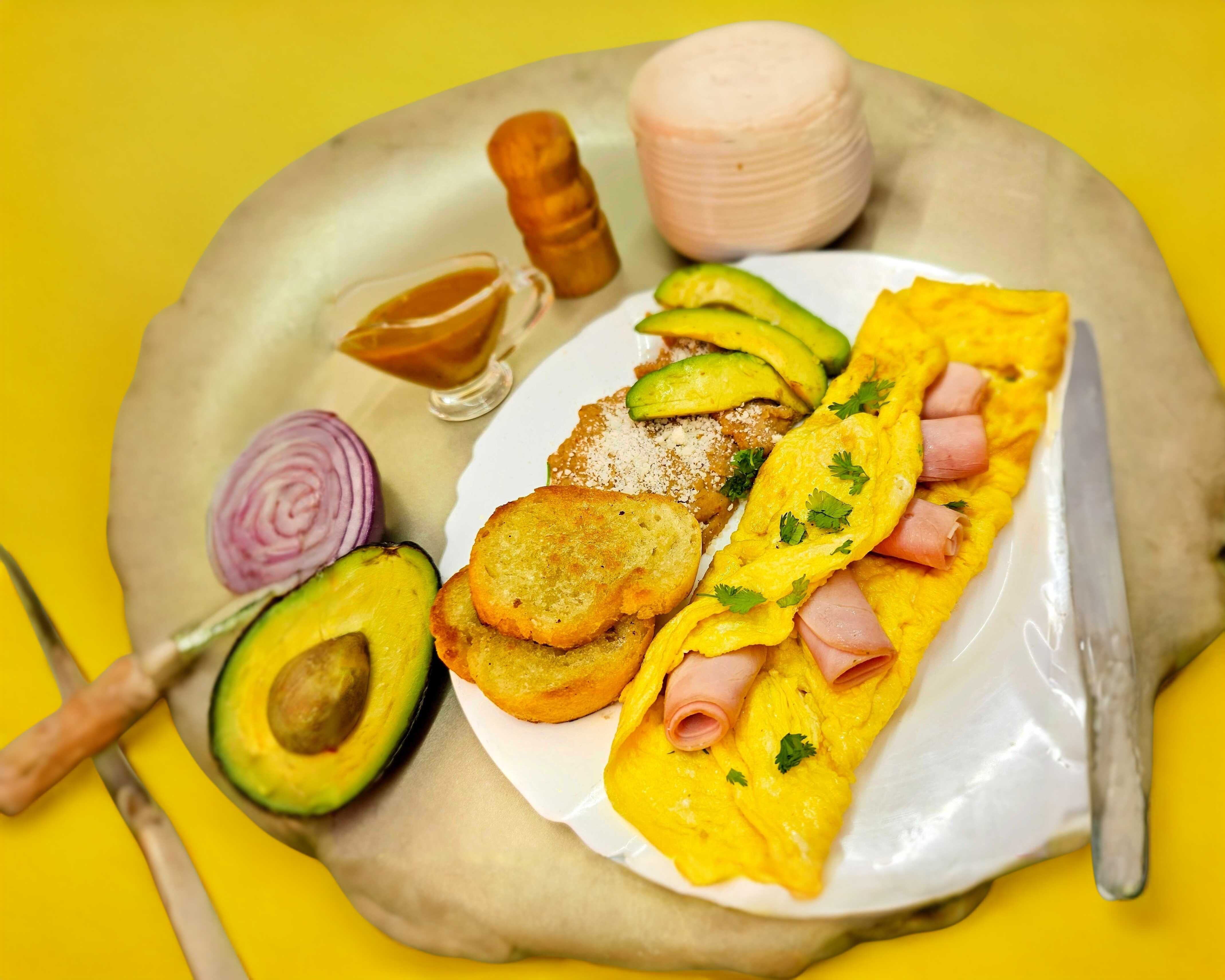 Disfruta de un delicioso Omelette recién hecho con 2 porciones de huevo y el ingrediente que más te gusten a elegir, relleno con queso Mozzarella derretido para un toque cremoso e irresistible. Lo acompañan una porción de frijoles refritos y crujientes rodajas de birote. Este desayuno es la combinación perfecta de tradición y sabor casero. ¡Elige tus ingredientes favoritos y disfruta!