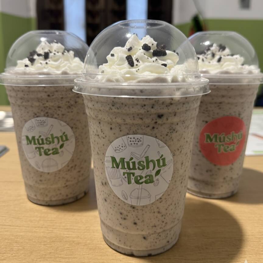 Delicioso frappeado de Oreo con fresa y leche deslactosada. Porcion de tapioca