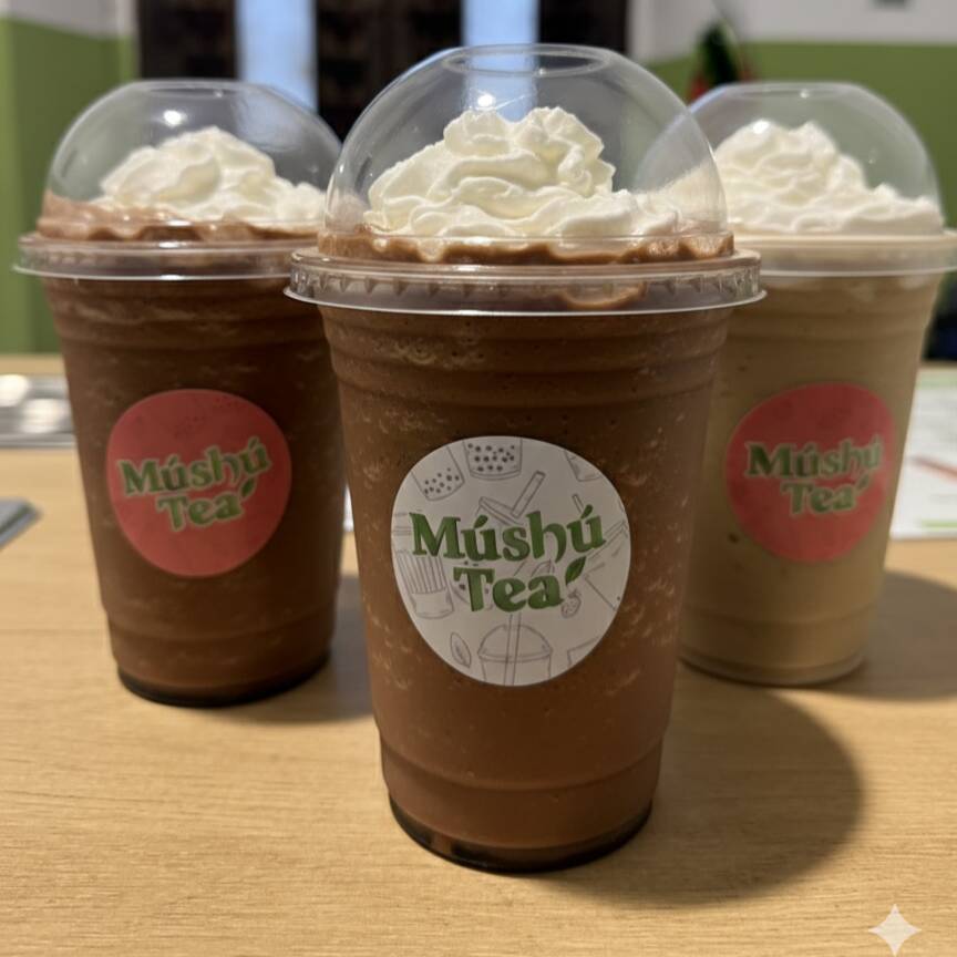Deliciosa bebida frapeada con leche deslactosada y shot de rompope,.