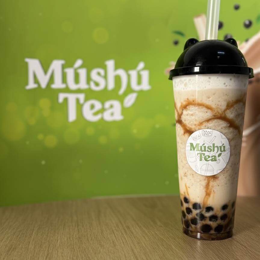Delicioso frappeado de caramelo y leche deslactosada. Porcion de tapioca
