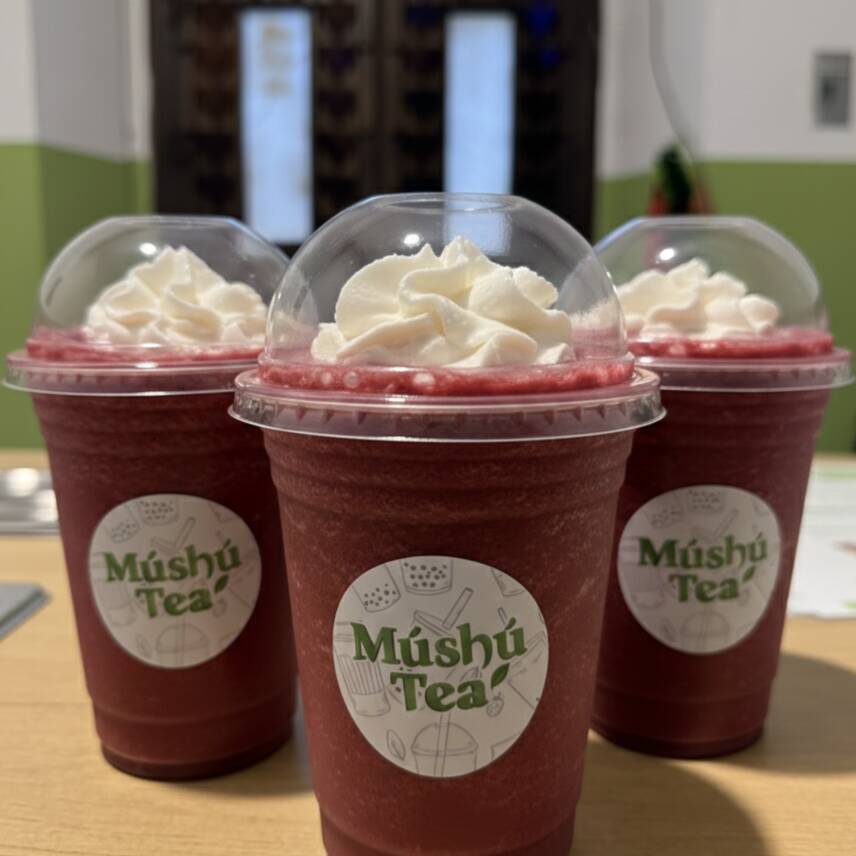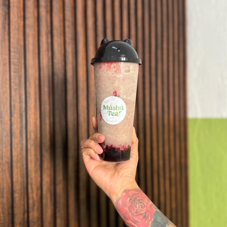 Delicioso frappedo de furtos rojos con leche deslactosado. Porcion de Tapioca. (Puede ser tambien frappeado base agua)