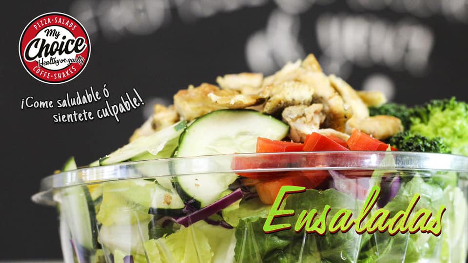 Base: lechuga, pepino, jitomate y zanahoria. 1 Proteína y 2 ingredientes de barra fría.