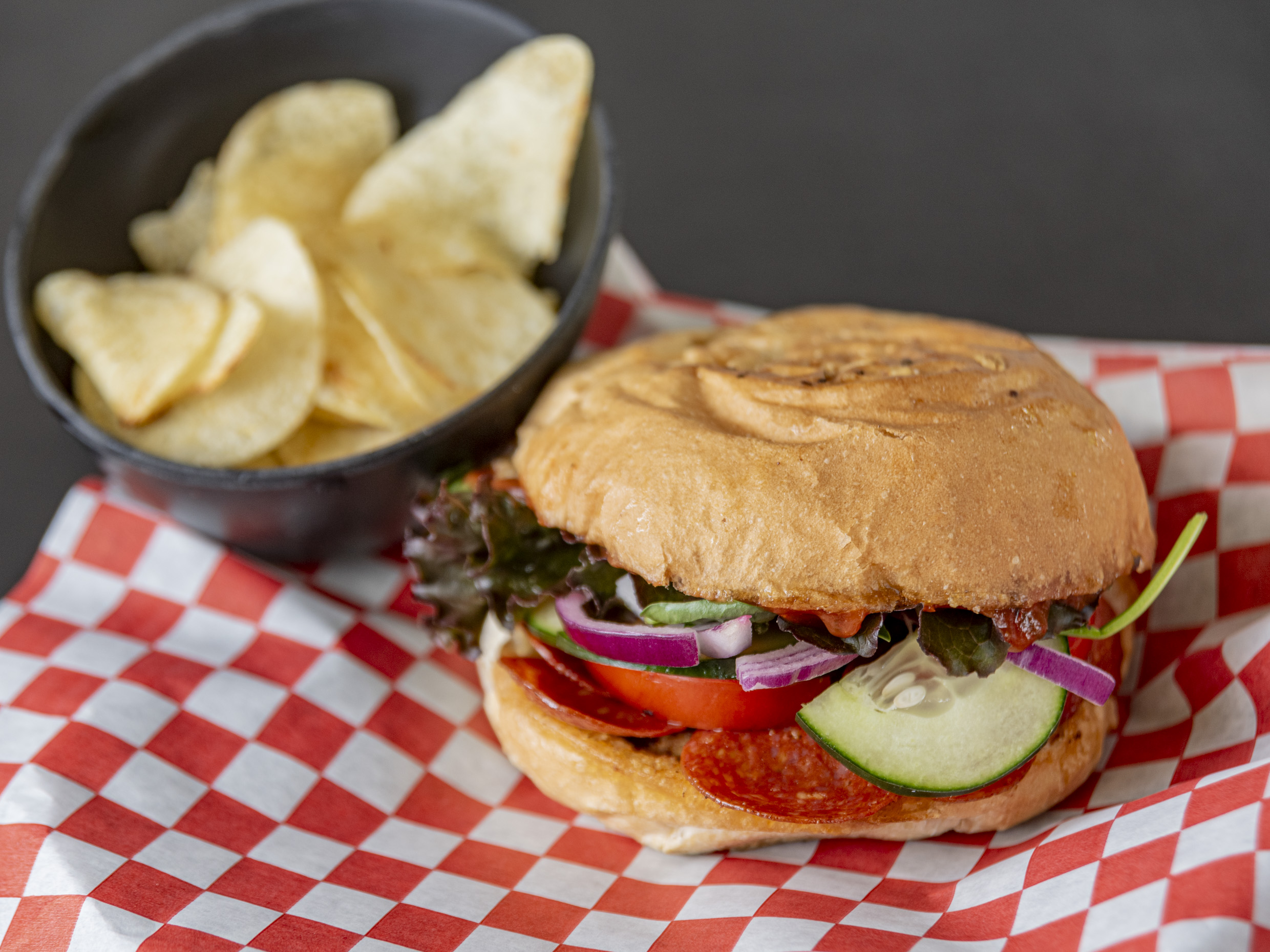 Peperoni, queso manchego, salsa pomodoro, jitomate, lechuga, pepino, zanahoria y germinado.