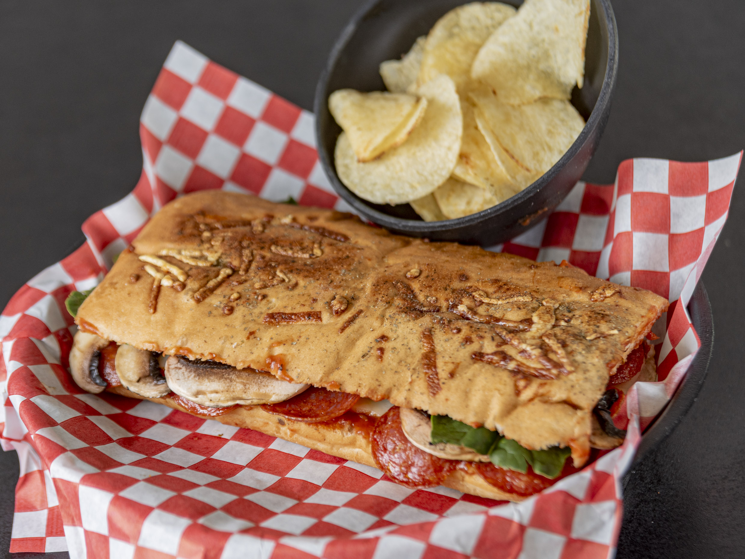 Res, extra queso, pepperoni, salsa pomodoro, vegetales y chips