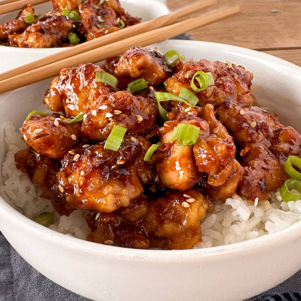 Pollo crispy glaseado con nuestra salsa especial tso con un toque thai, acompañado con arroz jasmin.